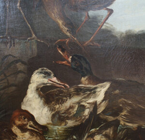 Giovanni Crivelli Dipinto su tela raffigurante “Anitre e uccelli acquatici".
